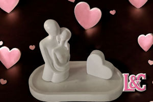 plateau couple avec un cœur ouvert sur le dessus pour y mettre une photo